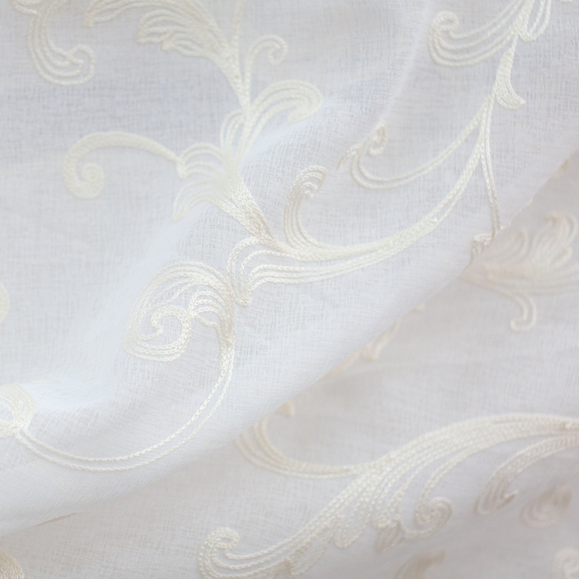 - Contemporary All Over Embroidered Sheer on Linen Look Fabric