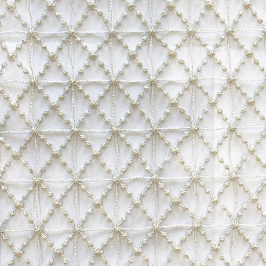 Add a touch of elegance to any room with Gallery Fabric's Embroidered Rhinestone Sheer. Featuring a diamond shaped design and a small crystal patte...