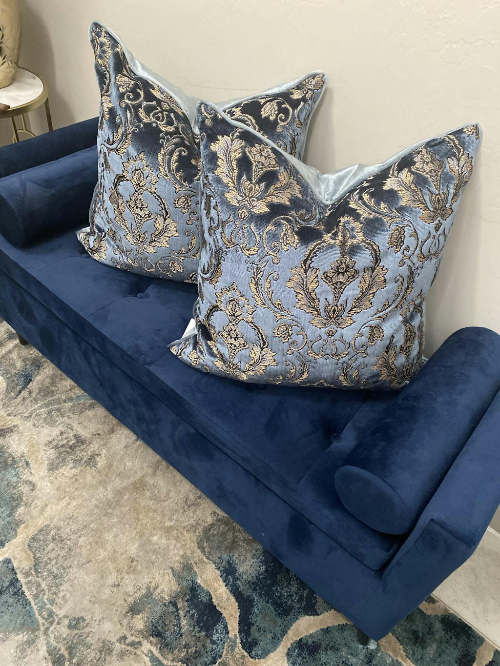 Expertly crafted with luxurious damask and cut velvet materials, the Beatrice Pillows add a touch of elegance to any space. Measuring 24x24, these pillows are the perfect size for comfortable lounging. Don't miss out on these limited quantity pieces.