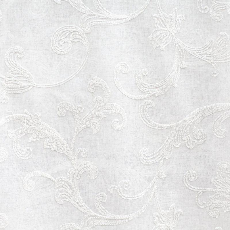 Lana Fabric is a beautifully embroidered sheer textile, measuring 110 inches wide, ideal for elegant drapery applications. Its light to medium weight offers a delicate balance of transparency and structure, allowing natural light to filter softly while providing subtle privacy. Perfect for adding a refined floral touch to interior spaces, this fabric combines aesthetic appeal with functional versatility.